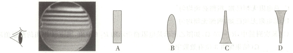 3. C [因竖直放置的肥皂薄膜受到重力的作用,薄膜呈现下面厚、上面薄的劈尖形状,因此在薄膜上不同的地方,来自前、后两个面的反射光所走的路程差不同,导致条纹上疏下密,故从侧面观察肥皂膜的形状,最接近的是C项。故选C。]