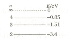1.大连相干光源是我国第一台高增益自由电子激光大型用户装置,其激光辐射所应用的玻尔原子理论很好地解释了氢原子的光谱特征。图为氢原子的能级示意图,已知金属钾的逸出功为$2.25\ {eV}$,当大量处于$n=3$能级的氢原子向低能级跃迁时,辐射的光能使金属钾发生光电效应的有