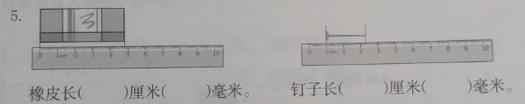 3. 观察下图,回形针长3厘米,估一估,铅笔长约(