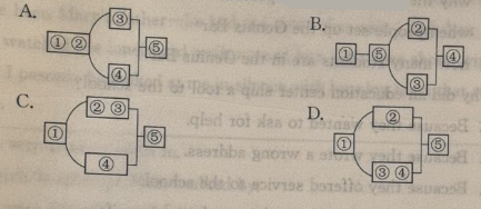 解析:文章第一段引出学校园艺课这一学科(①);第二、三段讲学生喜欢园艺课的原因(②③);第四段讲学生能从中学到东西(④);第五段总结学生喜欢户外课程(⑤),整体结构与选项 D 一致。