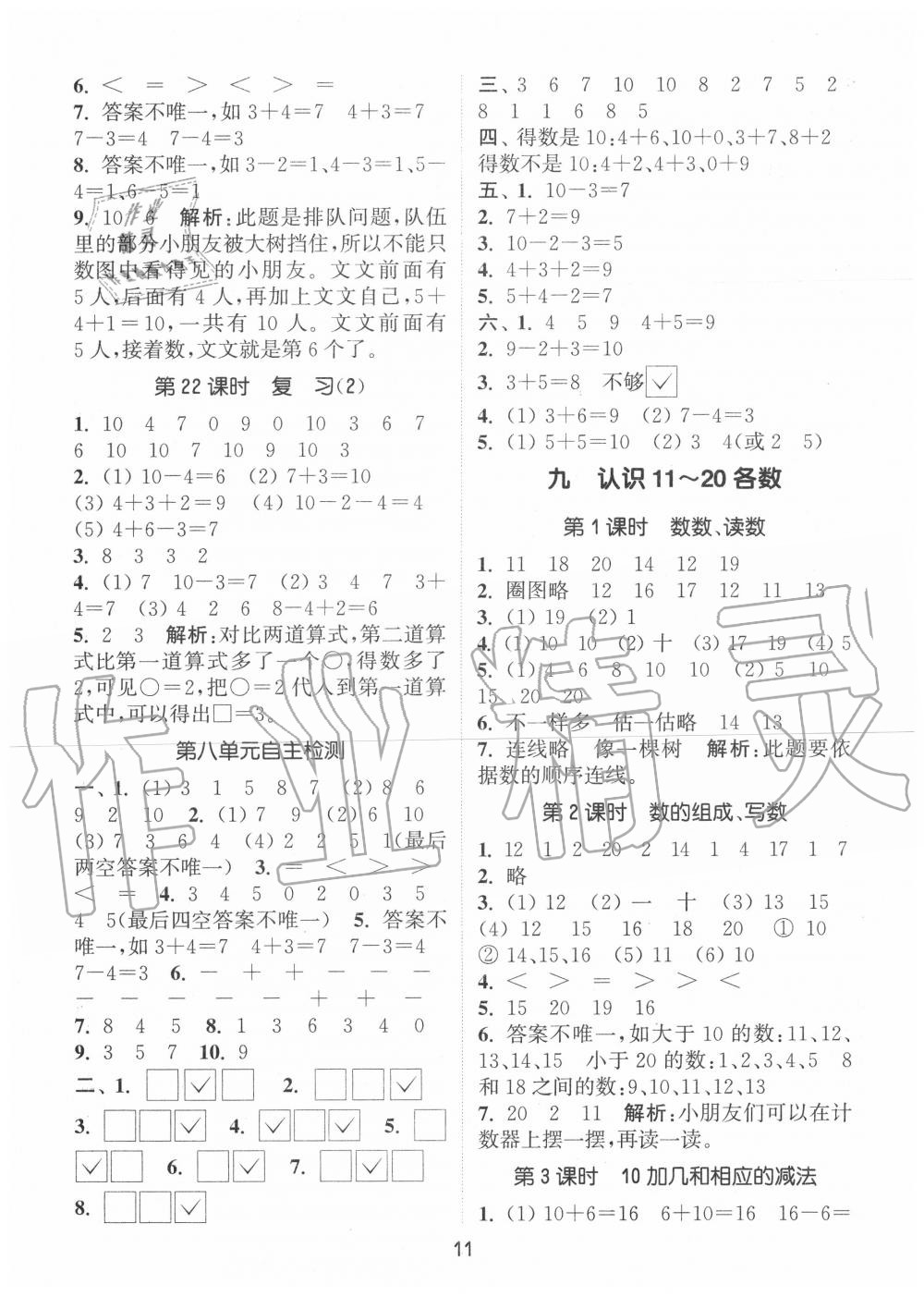 2020年通城学典课时作业本一年级数学上册苏教版江苏专用