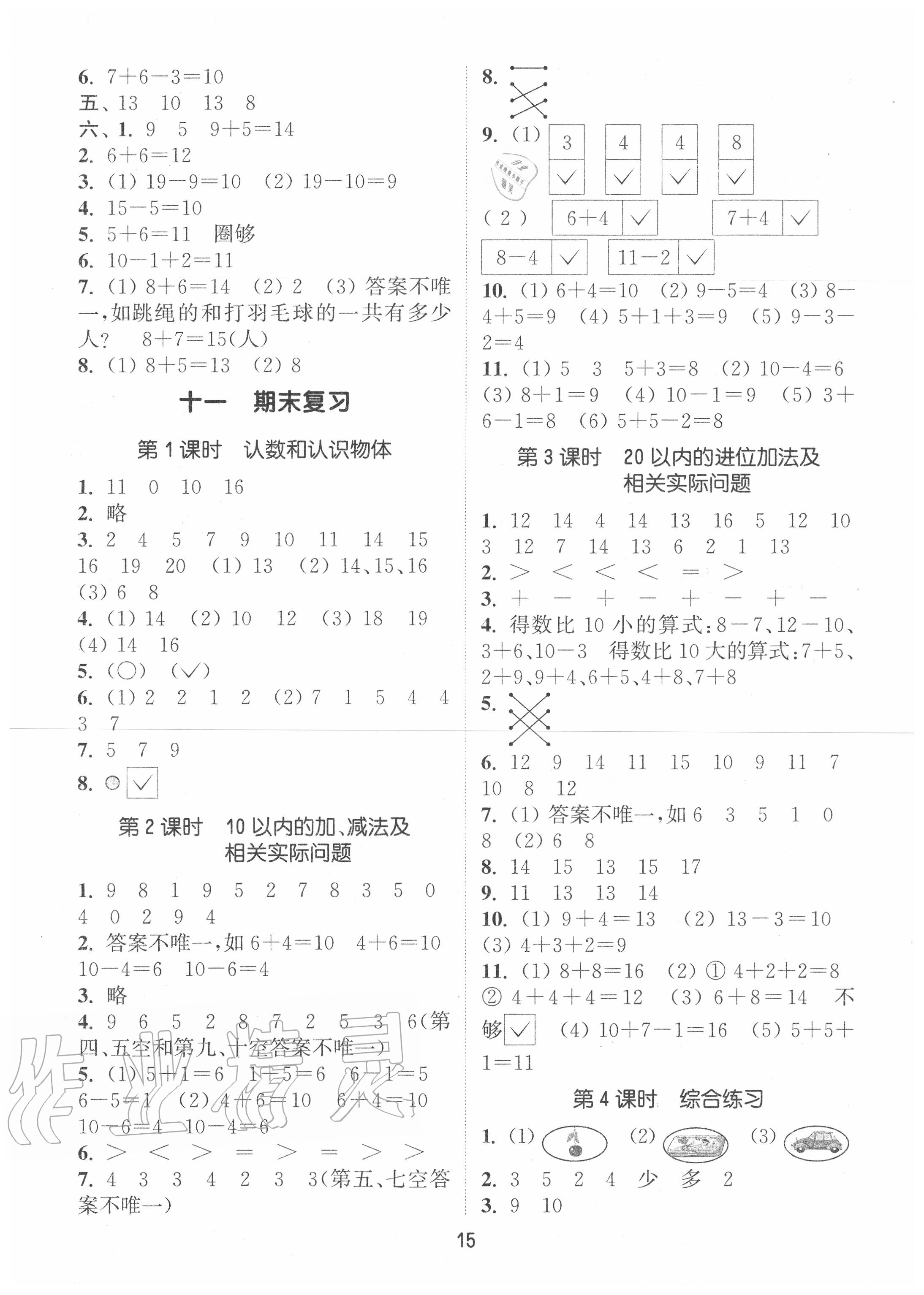 2020年通城学典课时作业本一年级数学上册苏教版江苏专用