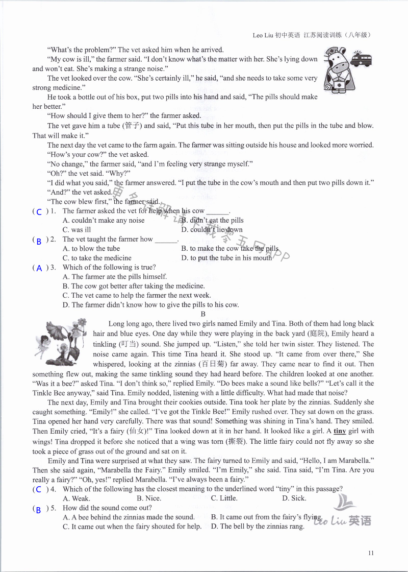 注:目前有些书本章节名称可能整理的还不是很完善,但都是按照顺序排列的,请同学们按照顺序仔细查找。练习册 2021年LeoLiu初中英语八年级听力训练阅读训练 答案主要是用来给同学们做完题方便对答案用的,请勿直接抄袭。