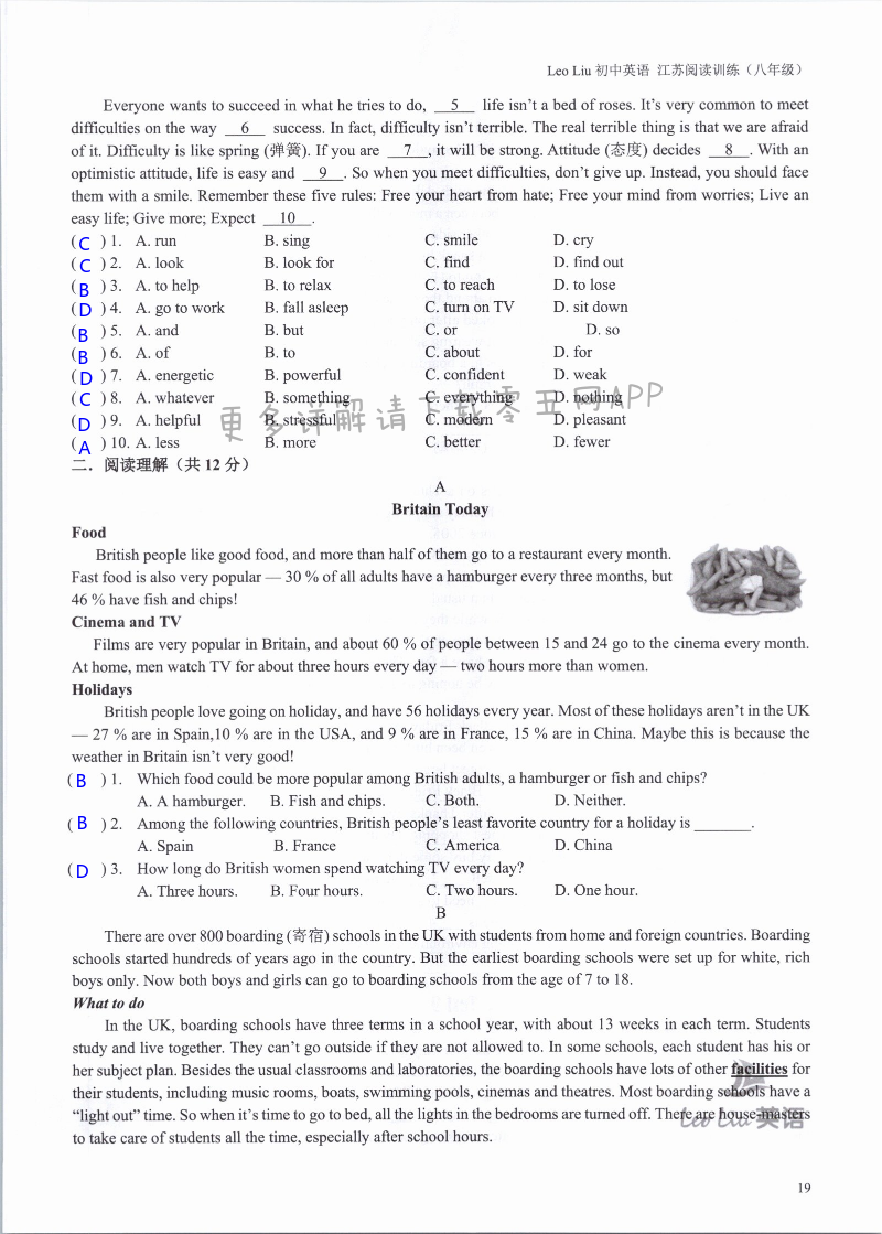 注:目前有些书本章节名称可能整理的还不是很完善,但都是按照顺序排列的,请同学们按照顺序仔细查找。练习册 2021年LeoLiu初中英语八年级听力训练阅读训练 答案主要是用来给同学们做完题方便对答案用的,请勿直接抄袭。