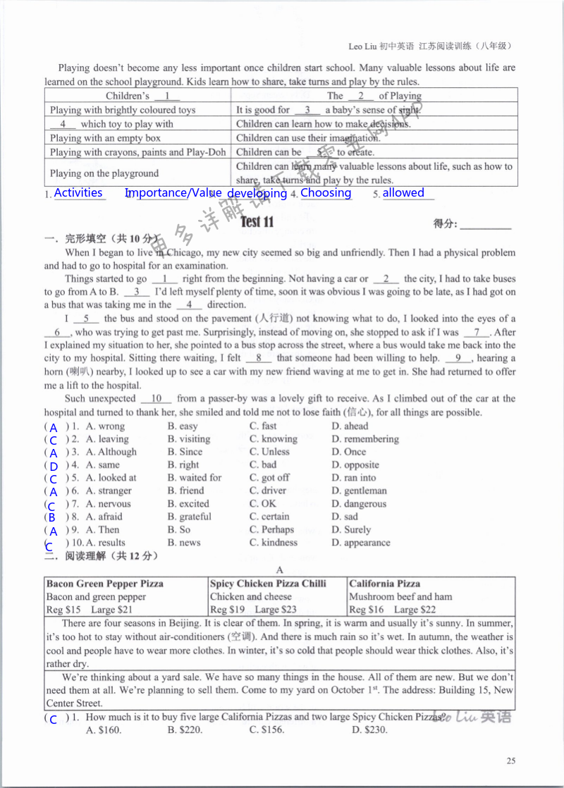 注:目前有些书本章节名称可能整理的还不是很完善,但都是按照顺序排列的,请同学们按照顺序仔细查找。练习册 2021年LeoLiu初中英语八年级听力训练阅读训练 答案主要是用来给同学们做完题方便对答案用的,请勿直接抄袭。