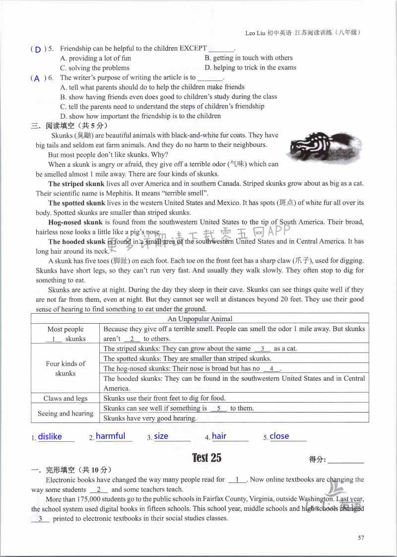 注:目前有些书本章节名称可能整理的还不是很完善,但都是按照顺序排列的,请同学们按照顺序仔细查找。练习册 2021年LeoLiu初中英语八年级听力训练阅读训练 答案主要是用来给同学们做完题方便对答案用的,请勿直接抄袭。