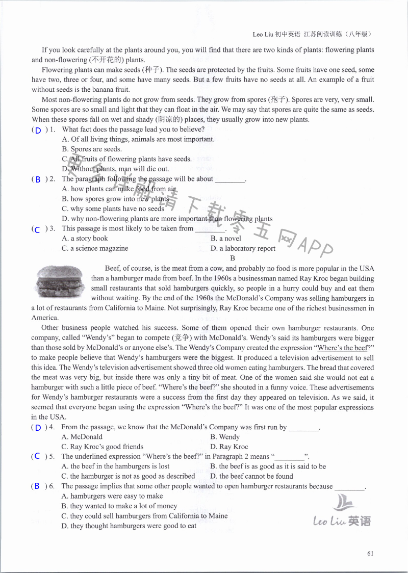 注:目前有些书本章节名称可能整理的还不是很完善,但都是按照顺序排列的,请同学们按照顺序仔细查找。练习册 2021年LeoLiu初中英语八年级听力训练阅读训练 答案主要是用来给同学们做完题方便对答案用的,请勿直接抄袭。