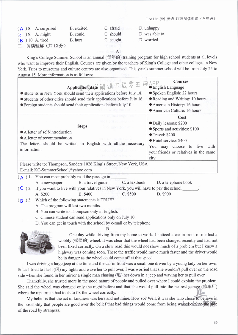 注:目前有些书本章节名称可能整理的还不是很完善,但都是按照顺序排列的,请同学们按照顺序仔细查找。练习册 2021年LeoLiu初中英语八年级听力训练阅读训练 答案主要是用来给同学们做完题方便对答案用的,请勿直接抄袭。
