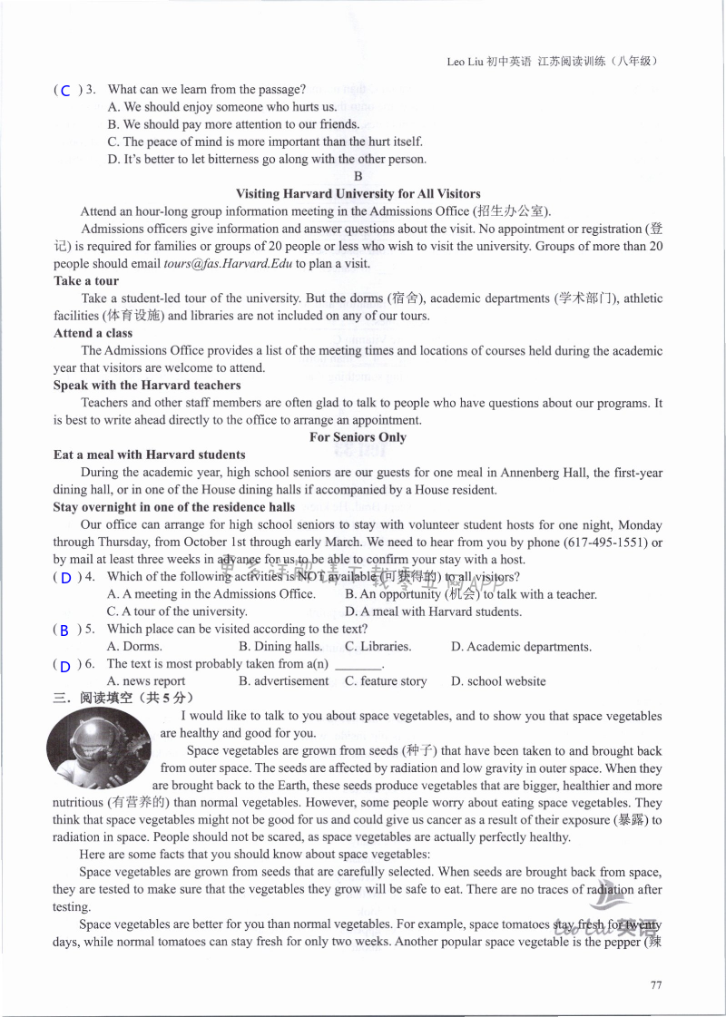 注:目前有些书本章节名称可能整理的还不是很完善,但都是按照顺序排列的,请同学们按照顺序仔细查找。练习册 2021年LeoLiu初中英语八年级听力训练阅读训练 答案主要是用来给同学们做完题方便对答案用的,请勿直接抄袭。