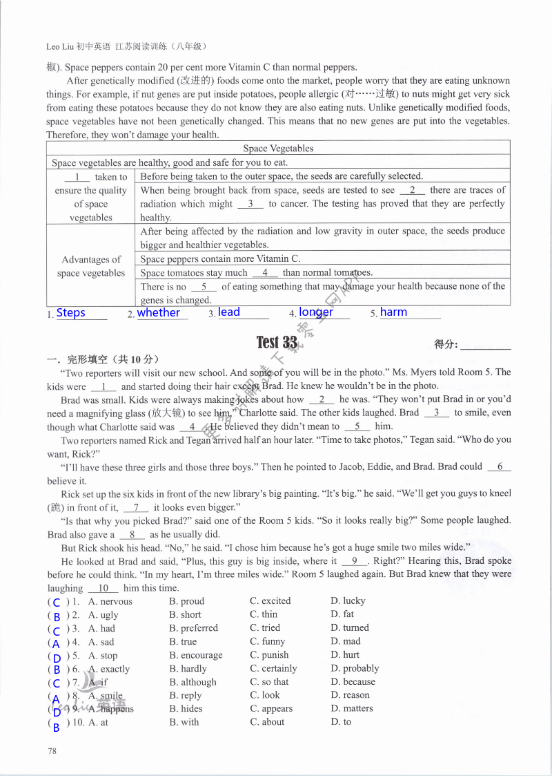注:目前有些书本章节名称可能整理的还不是很完善,但都是按照顺序排列的,请同学们按照顺序仔细查找。练习册 2021年LeoLiu初中英语八年级听力训练阅读训练 答案主要是用来给同学们做完题方便对答案用的,请勿直接抄袭。