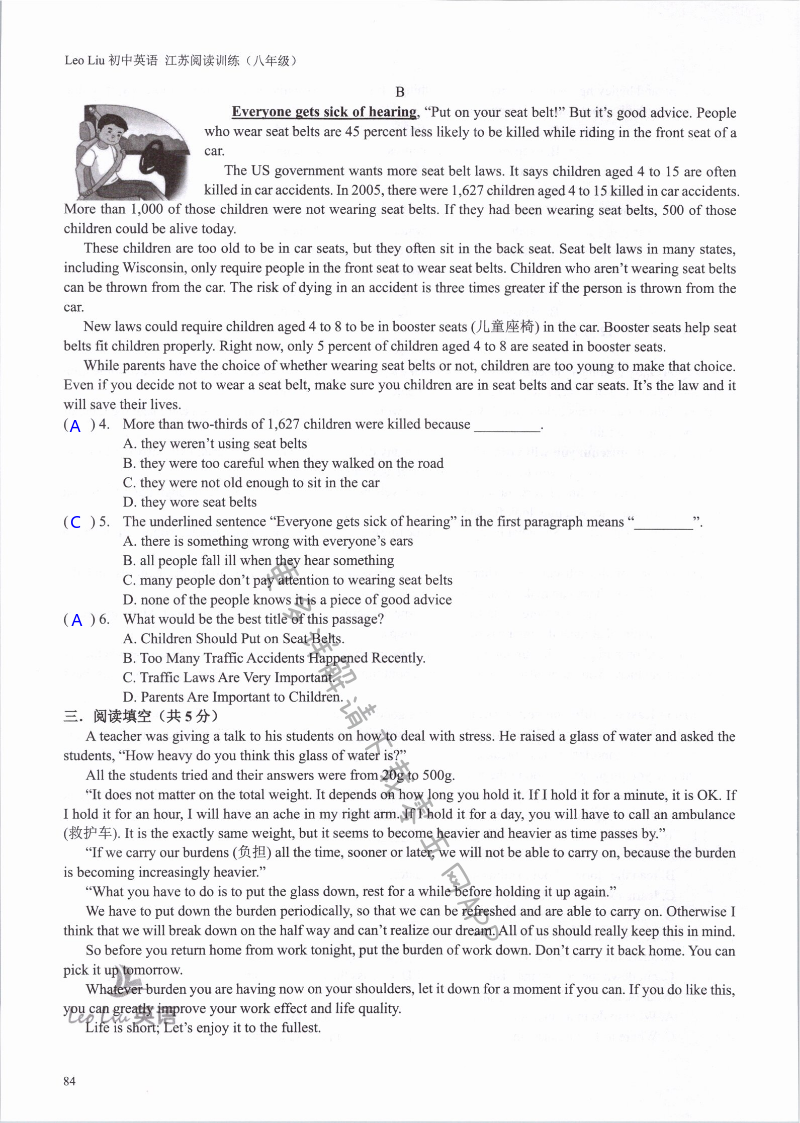 注:目前有些书本章节名称可能整理的还不是很完善,但都是按照顺序排列的,请同学们按照顺序仔细查找。练习册 2021年LeoLiu初中英语八年级听力训练阅读训练 答案主要是用来给同学们做完题方便对答案用的,请勿直接抄袭。