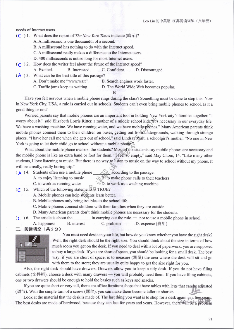 注:目前有些书本章节名称可能整理的还不是很完善,但都是按照顺序排列的,请同学们按照顺序仔细查找。练习册 2021年LeoLiu初中英语八年级听力训练阅读训练 答案主要是用来给同学们做完题方便对答案用的,请勿直接抄袭。