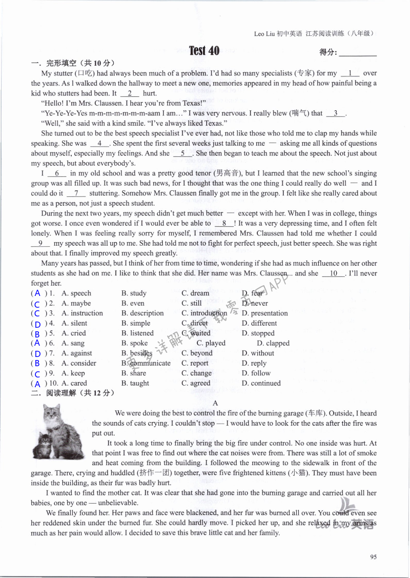 注:目前有些书本章节名称可能整理的还不是很完善,但都是按照顺序排列的,请同学们按照顺序仔细查找。练习册 2021年LeoLiu初中英语八年级听力训练阅读训练 答案主要是用来给同学们做完题方便对答案用的,请勿直接抄袭。
