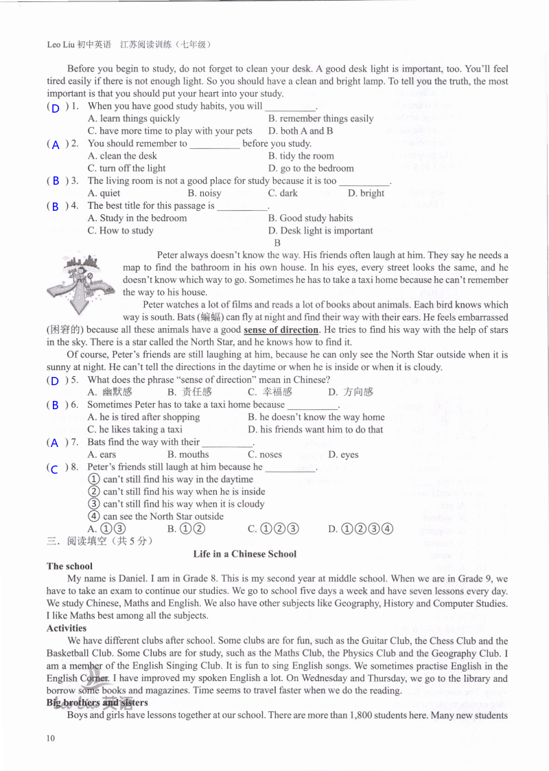注:目前有些书本章节名称可能整理的还不是很完善,但都是按照顺序排列的,请同学们按照顺序仔细查找。练习册 2021年LeoLiu初中英语七年级听力训练阅读训练 答案主要是用来给同学们做完题方便对答案用的,请勿直接抄袭。