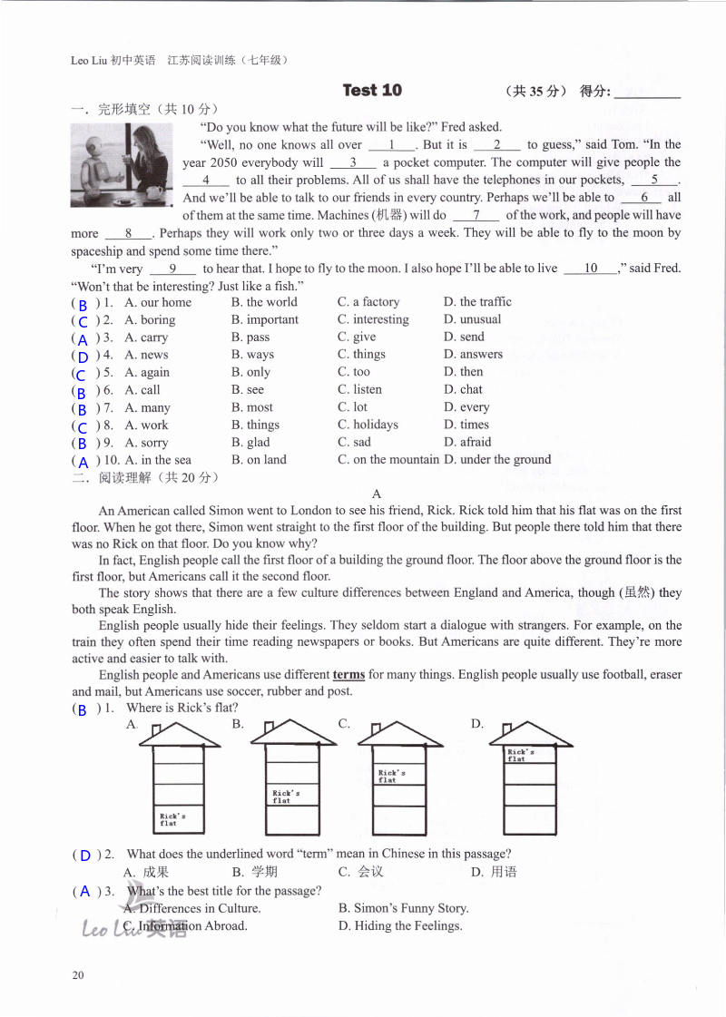 注:目前有些书本章节名称可能整理的还不是很完善,但都是按照顺序排列的,请同学们按照顺序仔细查找。练习册 2021年LeoLiu初中英语七年级听力训练阅读训练 答案主要是用来给同学们做完题方便对答案用的,请勿直接抄袭。