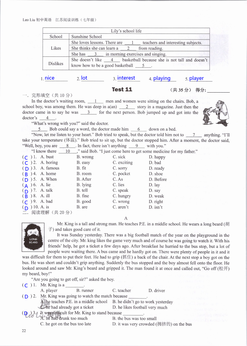 注:目前有些书本章节名称可能整理的还不是很完善,但都是按照顺序排列的,请同学们按照顺序仔细查找。练习册 2021年LeoLiu初中英语七年级听力训练阅读训练 答案主要是用来给同学们做完题方便对答案用的,请勿直接抄袭。