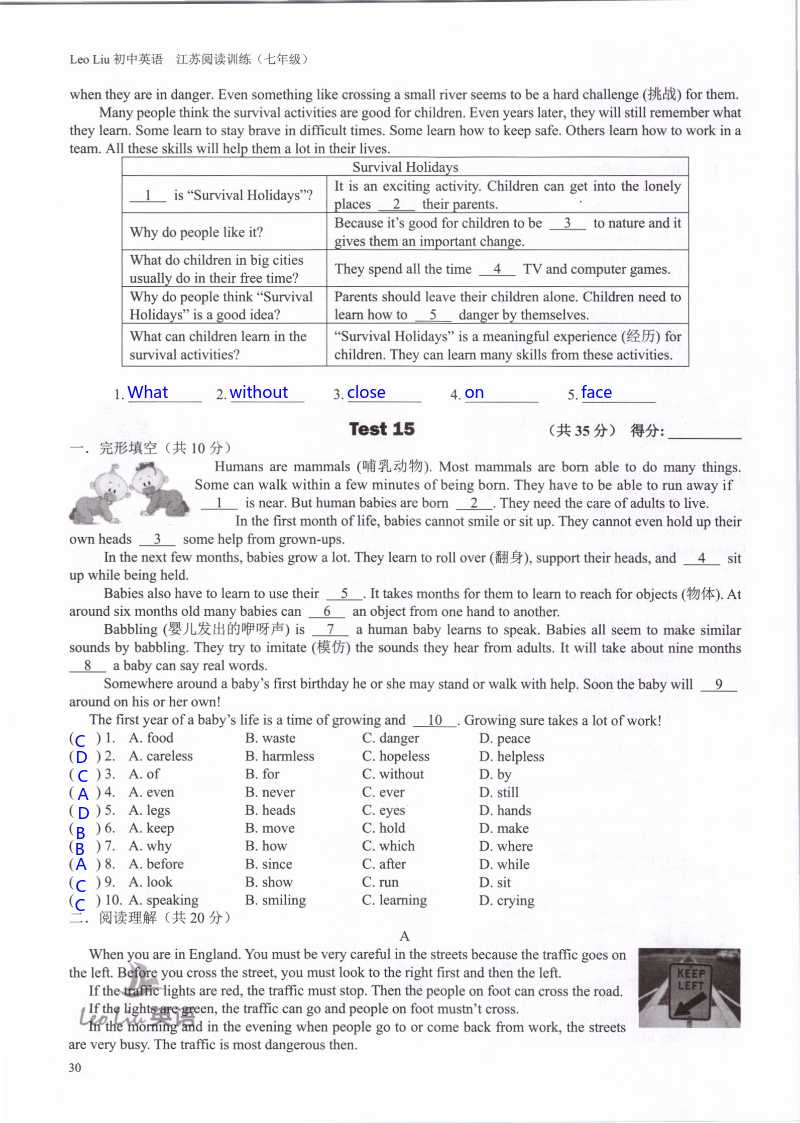 注:目前有些书本章节名称可能整理的还不是很完善,但都是按照顺序排列的,请同学们按照顺序仔细查找。练习册 2021年LeoLiu初中英语七年级听力训练阅读训练 答案主要是用来给同学们做完题方便对答案用的,请勿直接抄袭。
