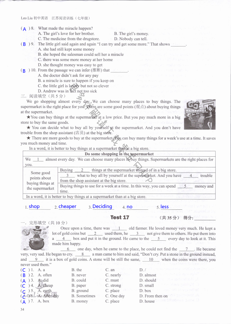 注:目前有些书本章节名称可能整理的还不是很完善,但都是按照顺序排列的,请同学们按照顺序仔细查找。练习册 2021年LeoLiu初中英语七年级听力训练阅读训练 答案主要是用来给同学们做完题方便对答案用的,请勿直接抄袭。