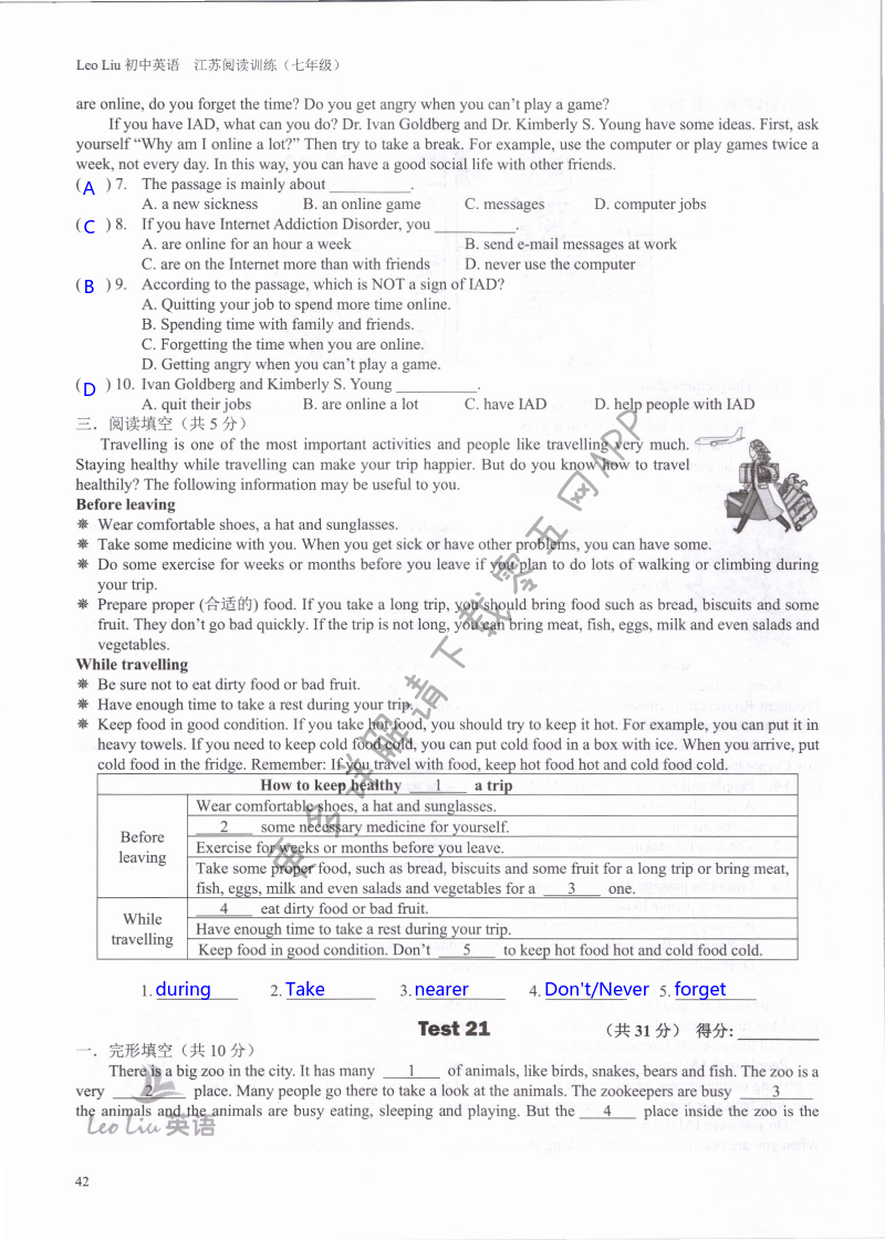 注:目前有些书本章节名称可能整理的还不是很完善,但都是按照顺序排列的,请同学们按照顺序仔细查找。练习册 2021年LeoLiu初中英语七年级听力训练阅读训练 答案主要是用来给同学们做完题方便对答案用的,请勿直接抄袭。