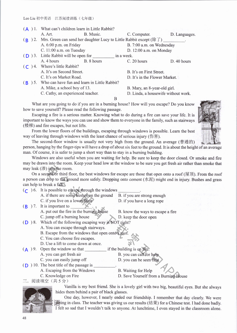 注:目前有些书本章节名称可能整理的还不是很完善,但都是按照顺序排列的,请同学们按照顺序仔细查找。练习册 2021年LeoLiu初中英语七年级听力训练阅读训练 答案主要是用来给同学们做完题方便对答案用的,请勿直接抄袭。