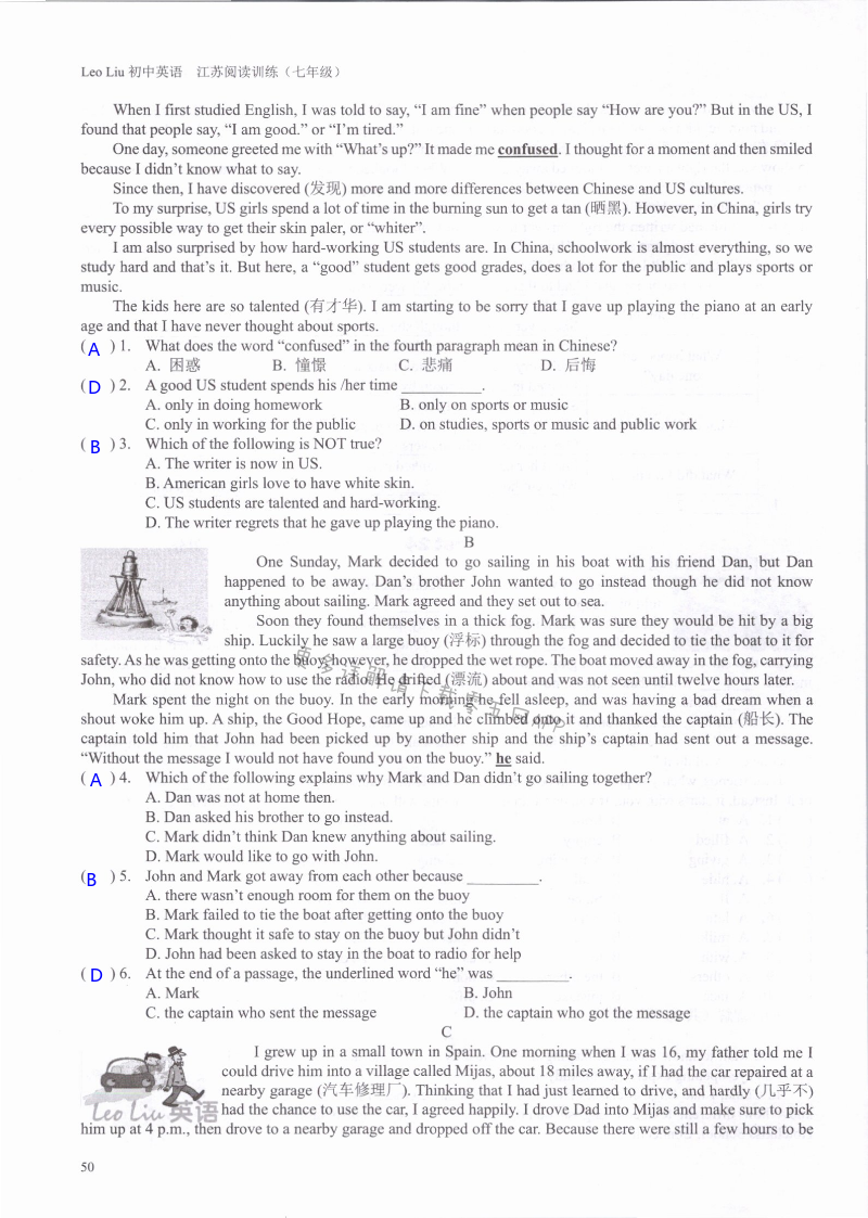 注:目前有些书本章节名称可能整理的还不是很完善,但都是按照顺序排列的,请同学们按照顺序仔细查找。练习册 2021年LeoLiu初中英语七年级听力训练阅读训练 答案主要是用来给同学们做完题方便对答案用的,请勿直接抄袭。