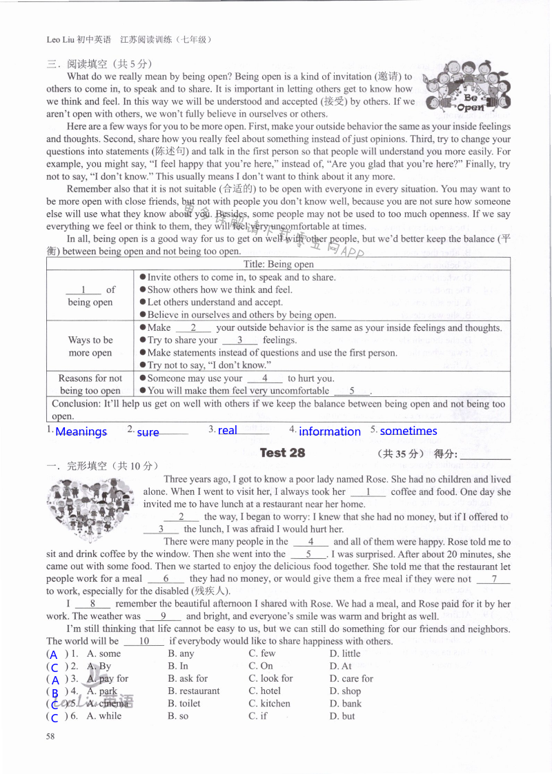 注:目前有些书本章节名称可能整理的还不是很完善,但都是按照顺序排列的,请同学们按照顺序仔细查找。练习册 2021年LeoLiu初中英语七年级听力训练阅读训练 答案主要是用来给同学们做完题方便对答案用的,请勿直接抄袭。