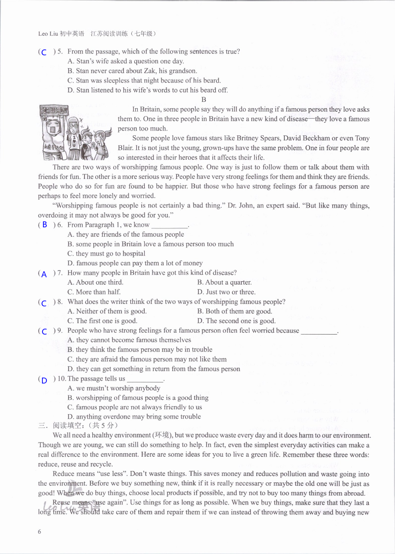 注:目前有些书本章节名称可能整理的还不是很完善,但都是按照顺序排列的,请同学们按照顺序仔细查找。练习册 2021年LeoLiu初中英语七年级听力训练阅读训练 答案主要是用来给同学们做完题方便对答案用的,请勿直接抄袭。