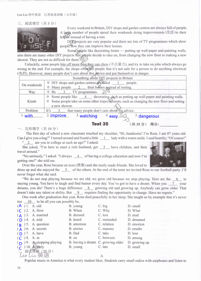注:目前有些书本章节名称可能整理的还不是很完善,但都是按照顺序排列的,请同学们按照顺序仔细查找。练习册 2021年LeoLiu初中英语七年级听力训练阅读训练 答案主要是用来给同学们做完题方便对答案用的,请勿直接抄袭。