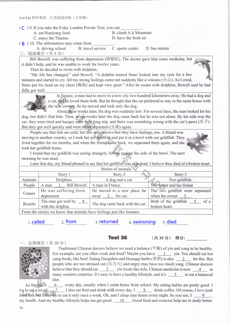 注:目前有些书本章节名称可能整理的还不是很完善,但都是按照顺序排列的,请同学们按照顺序仔细查找。练习册 2021年LeoLiu初中英语七年级听力训练阅读训练 答案主要是用来给同学们做完题方便对答案用的,请勿直接抄袭。