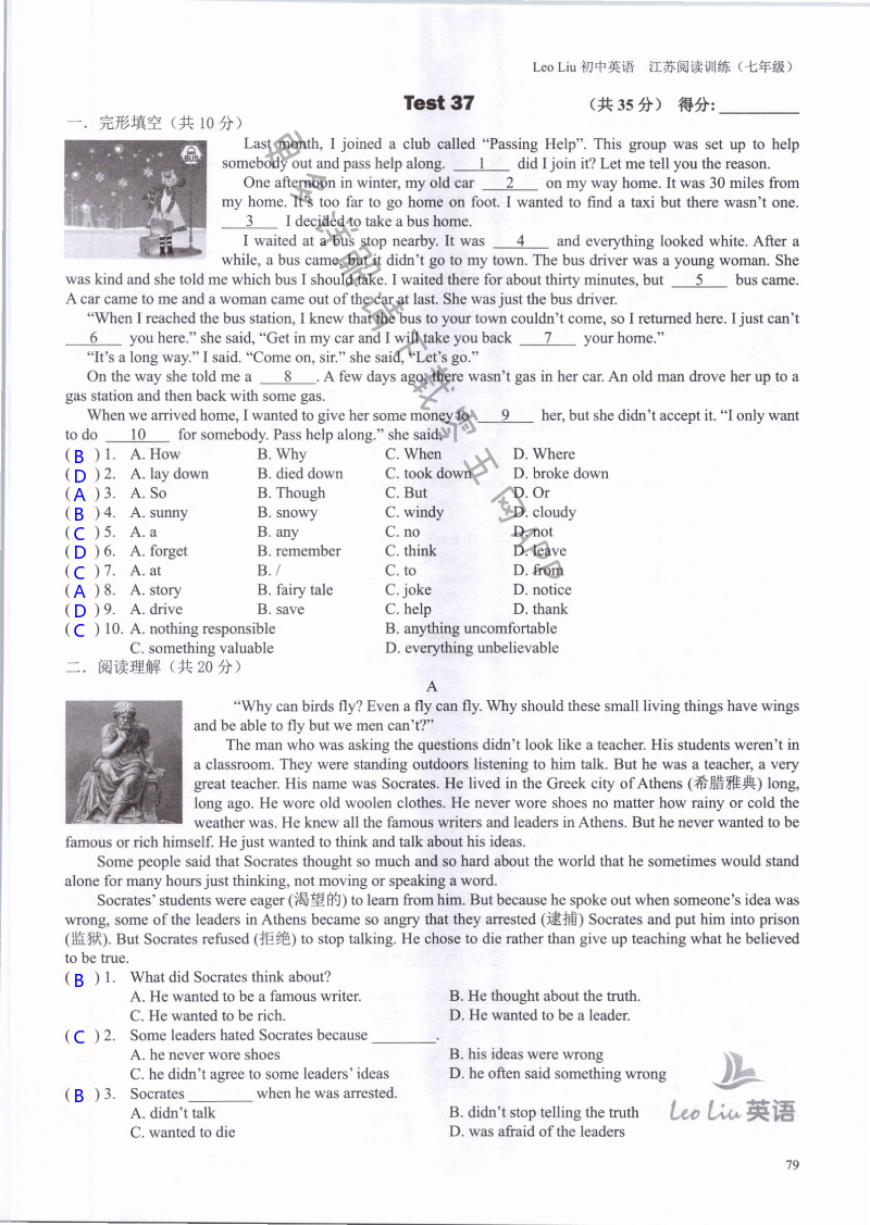 注:目前有些书本章节名称可能整理的还不是很完善,但都是按照顺序排列的,请同学们按照顺序仔细查找。练习册 2021年LeoLiu初中英语七年级听力训练阅读训练 答案主要是用来给同学们做完题方便对答案用的,请勿直接抄袭。
