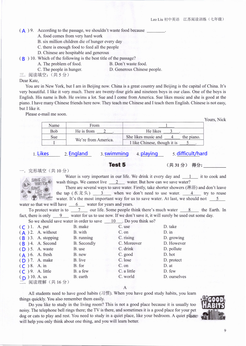 注:目前有些书本章节名称可能整理的还不是很完善,但都是按照顺序排列的,请同学们按照顺序仔细查找。练习册 2021年LeoLiu初中英语七年级听力训练阅读训练 答案主要是用来给同学们做完题方便对答案用的,请勿直接抄袭。