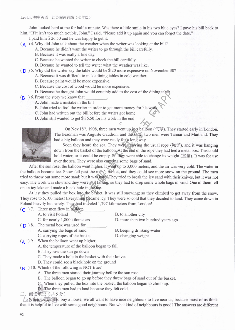 注:目前有些书本章节名称可能整理的还不是很完善,但都是按照顺序排列的,请同学们按照顺序仔细查找。练习册 2021年LeoLiu初中英语七年级听力训练阅读训练 答案主要是用来给同学们做完题方便对答案用的,请勿直接抄袭。