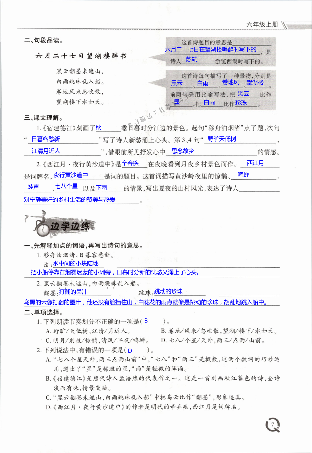 注:目前有些书本章节名称可能整理的还不是很完善,但都是按照顺序排列的,请同学们按照顺序仔细查找。练习册 2021年同步练习册青岛出版社六年级语文上册人教版 答案主要是用来给同学们做完题方便对答案用的,请勿直接抄袭。