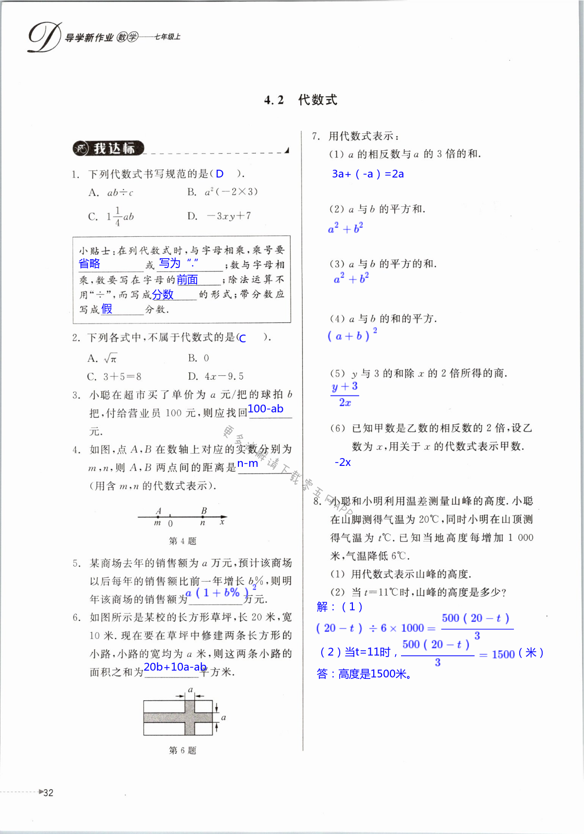 注:目前有些书本章节名称可能整理的还不是很完善,但都是按照顺序排列的,请同学们按照顺序仔细查找。练习册 2021年导学新作业七年级数学上册浙教版 答案主要是用来给同学们做完题方便对答案用的,请勿直接抄袭。