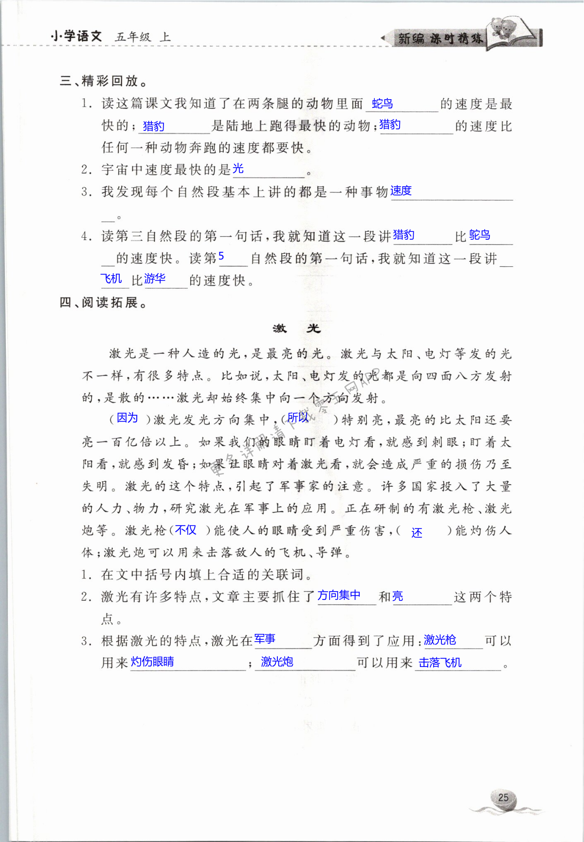 注:目前有些书本章节名称可能整理的还不是很完善,但都是按照顺序排列的,请同学们按照顺序仔细查找。练习册 2021年新编课时精练小学语文五年级上册人教版 答案主要是用来给同学们做完题方便对答案用的,请勿直接抄袭。