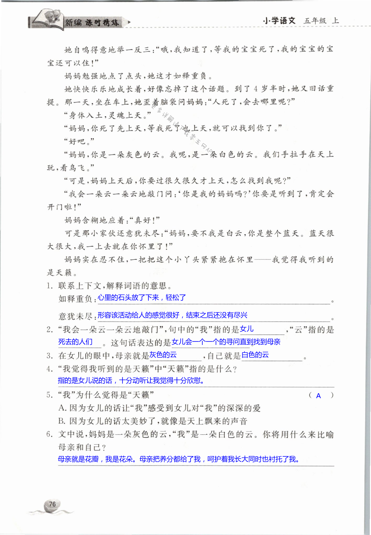 注:目前有些书本章节名称可能整理的还不是很完善,但都是按照顺序排列的,请同学们按照顺序仔细查找。练习册 2021年新编课时精练小学语文五年级上册人教版 答案主要是用来给同学们做完题方便对答案用的,请勿直接抄袭。