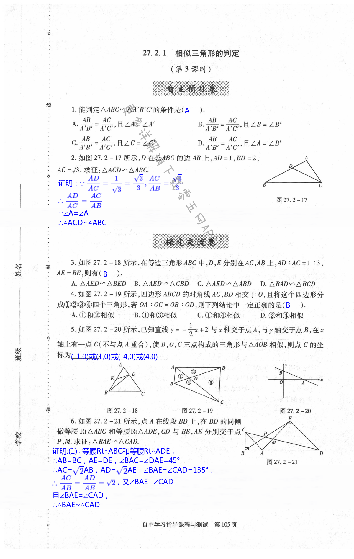 注:目前有些书本章节名称可能整理的还不是很完善,但都是按照顺序排列的,请同学们按照顺序仔细查找。练习册 2021年自主学习指导课程与测试九年级数学上册人教版 答案主要是用来给同学们做完题方便对答案用的,请勿直接抄袭。