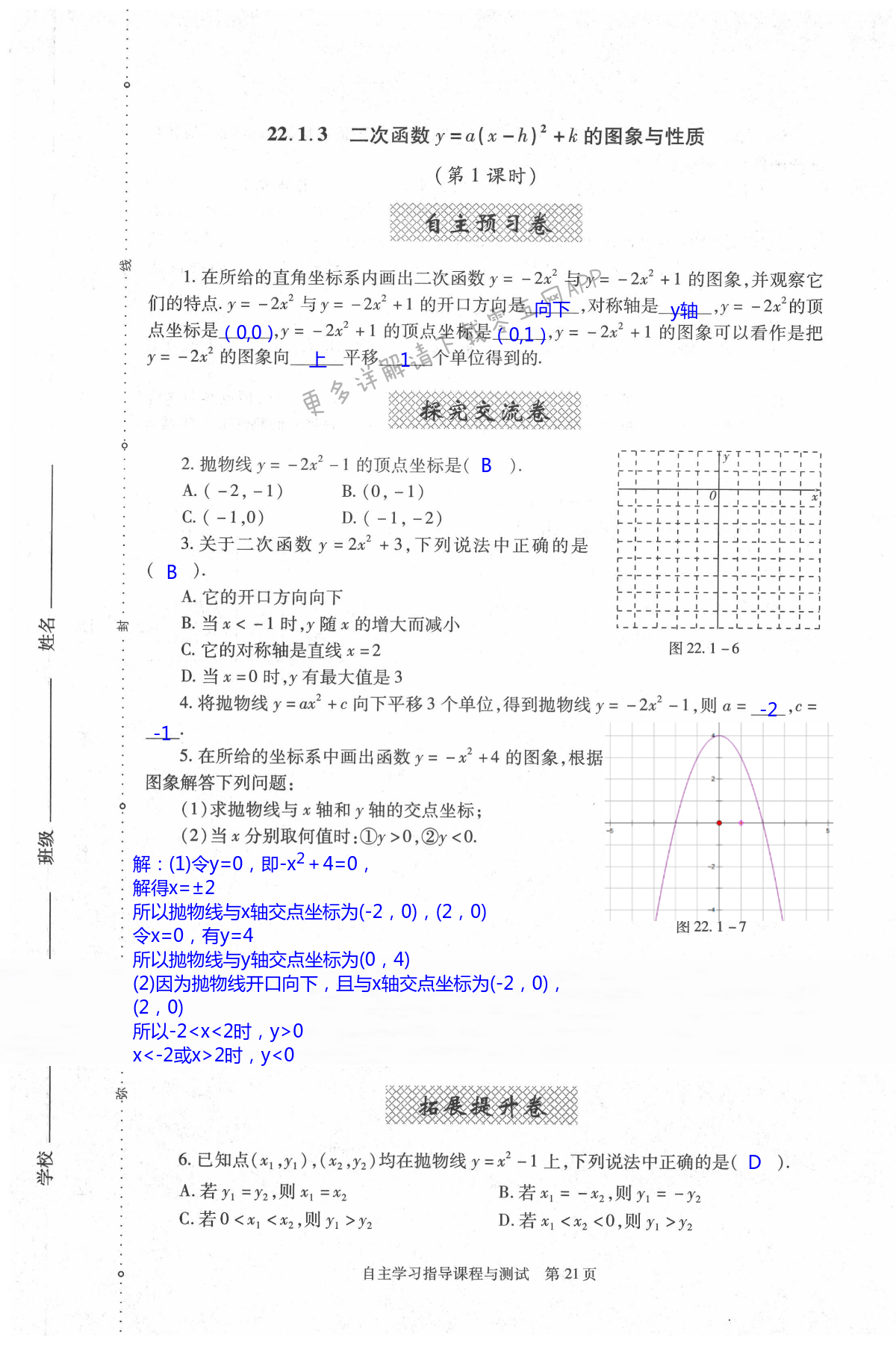 注:目前有些书本章节名称可能整理的还不是很完善,但都是按照顺序排列的,请同学们按照顺序仔细查找。练习册 2021年自主学习指导课程与测试九年级数学上册人教版 答案主要是用来给同学们做完题方便对答案用的,请勿直接抄袭。