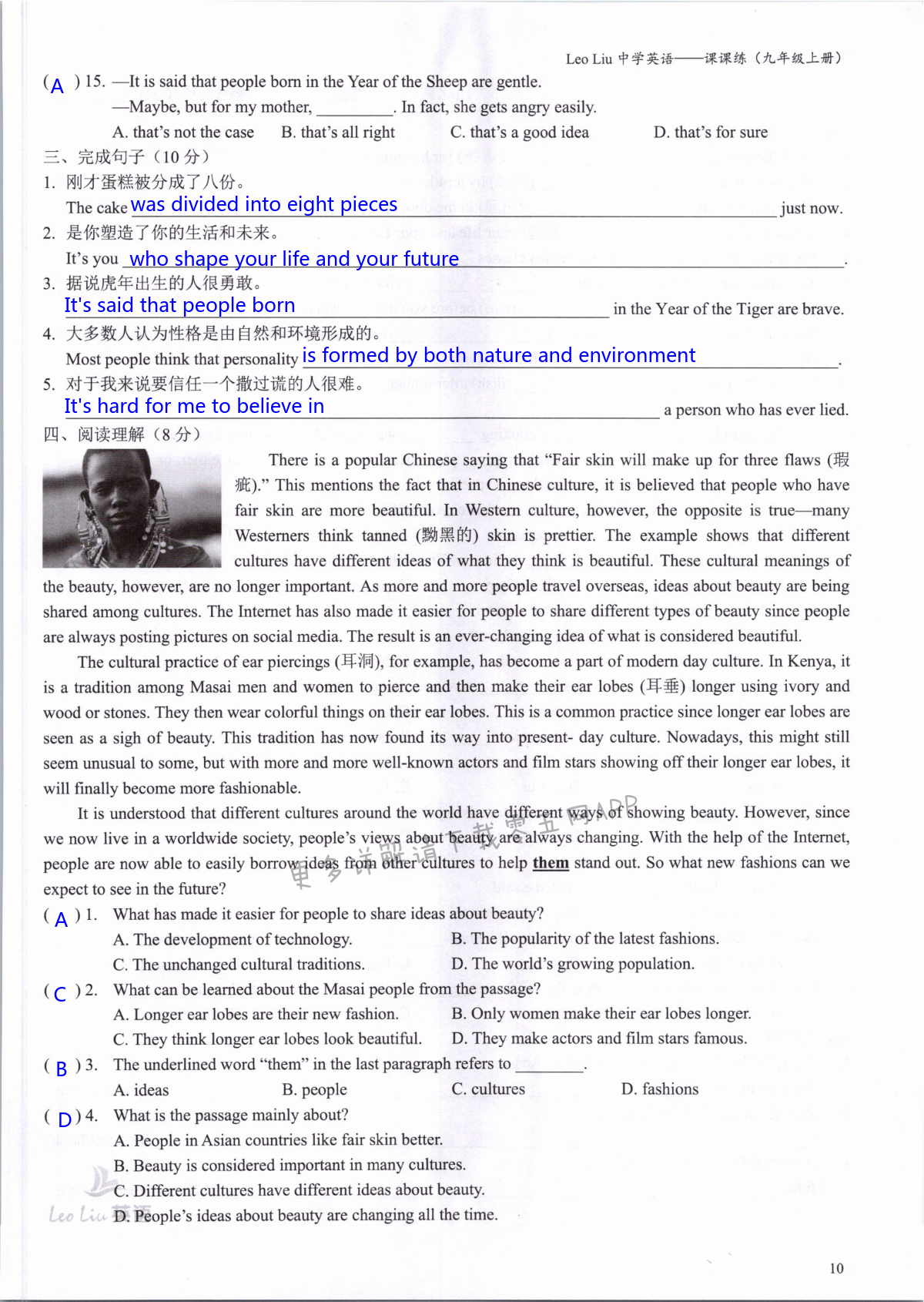 注:目前有些书本章节名称可能整理的还不是很完善,但都是按照顺序排列的,请同学们按照顺序仔细查找。练习册 2021年LeoLiu中学英语九年级上册译林版 答案主要是用来给同学们做完题方便对答案用的,请勿直接抄袭。