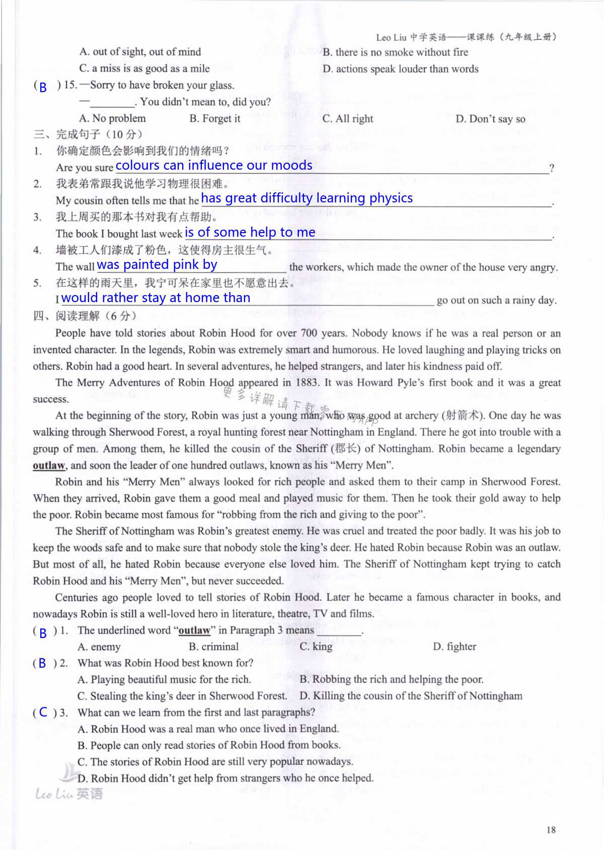 注:目前有些书本章节名称可能整理的还不是很完善,但都是按照顺序排列的,请同学们按照顺序仔细查找。练习册 2021年LeoLiu中学英语九年级上册译林版 答案主要是用来给同学们做完题方便对答案用的,请勿直接抄袭。