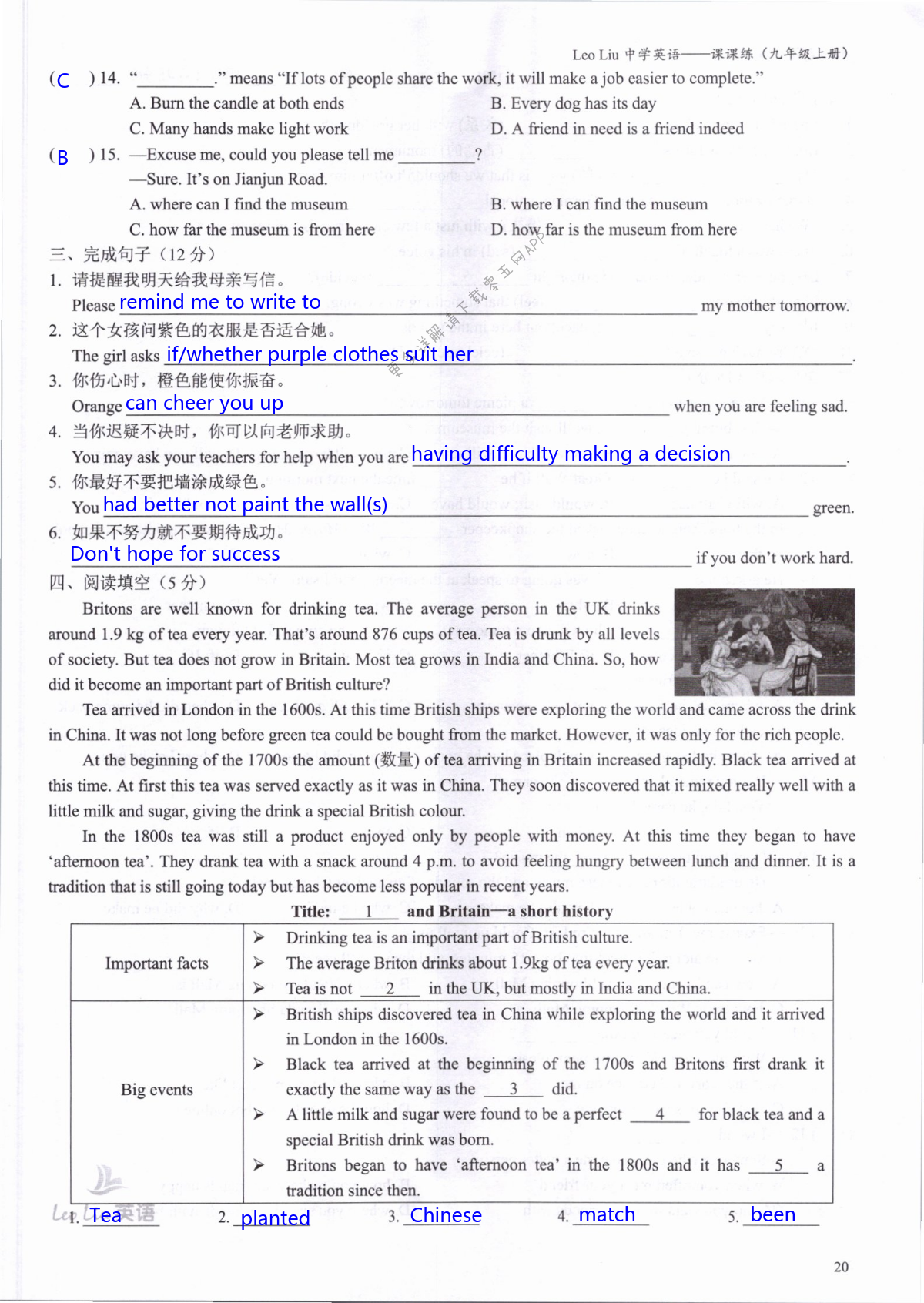 注:目前有些书本章节名称可能整理的还不是很完善,但都是按照顺序排列的,请同学们按照顺序仔细查找。练习册 2021年LeoLiu中学英语九年级上册译林版 答案主要是用来给同学们做完题方便对答案用的,请勿直接抄袭。