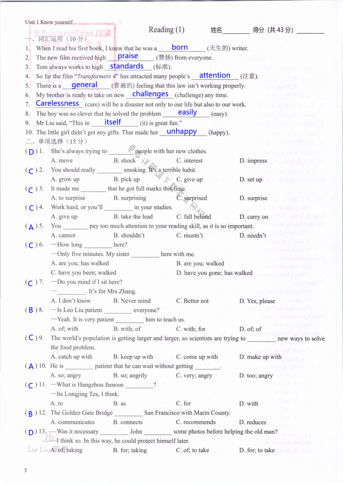 注:目前有些书本章节名称可能整理的还不是很完善,但都是按照顺序排列的,请同学们按照顺序仔细查找。练习册 2021年LeoLiu中学英语九年级上册译林版 答案主要是用来给同学们做完题方便对答案用的,请勿直接抄袭。