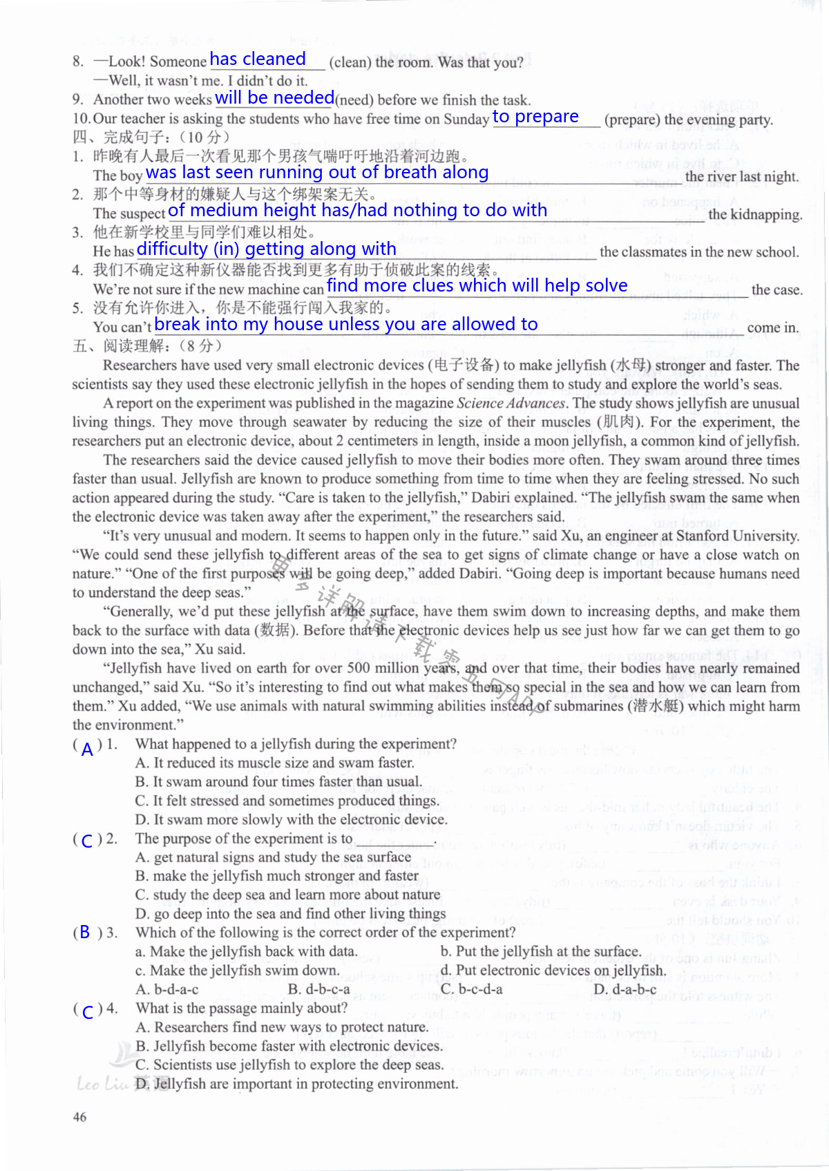 注:目前有些书本章节名称可能整理的还不是很完善,但都是按照顺序排列的,请同学们按照顺序仔细查找。练习册 2021年LeoLiu中学英语九年级上册译林版 答案主要是用来给同学们做完题方便对答案用的,请勿直接抄袭。