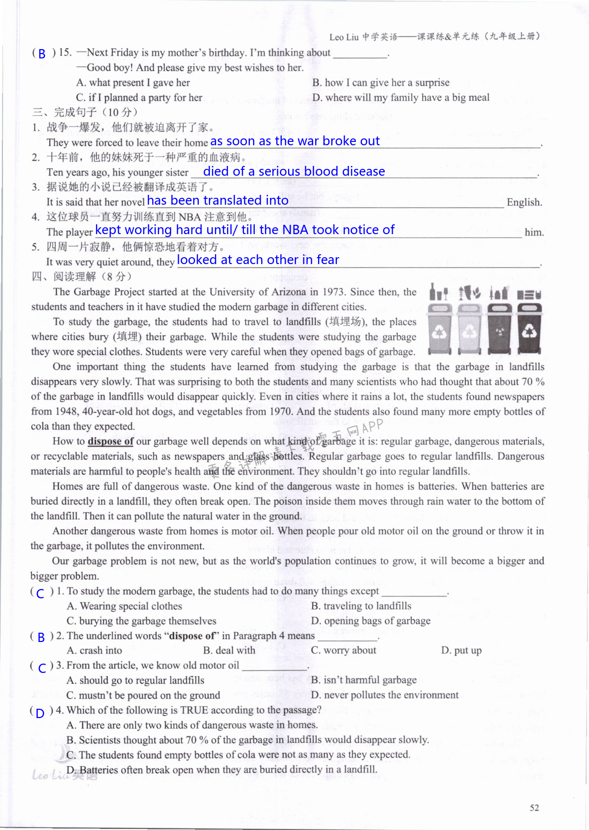 注:目前有些书本章节名称可能整理的还不是很完善,但都是按照顺序排列的,请同学们按照顺序仔细查找。练习册 2021年LeoLiu中学英语九年级上册译林版 答案主要是用来给同学们做完题方便对答案用的,请勿直接抄袭。