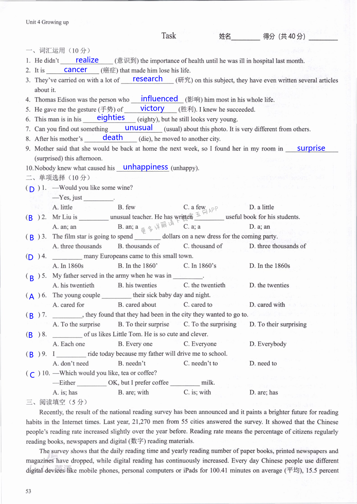 注:目前有些书本章节名称可能整理的还不是很完善,但都是按照顺序排列的,请同学们按照顺序仔细查找。练习册 2021年LeoLiu中学英语九年级上册译林版 答案主要是用来给同学们做完题方便对答案用的,请勿直接抄袭。