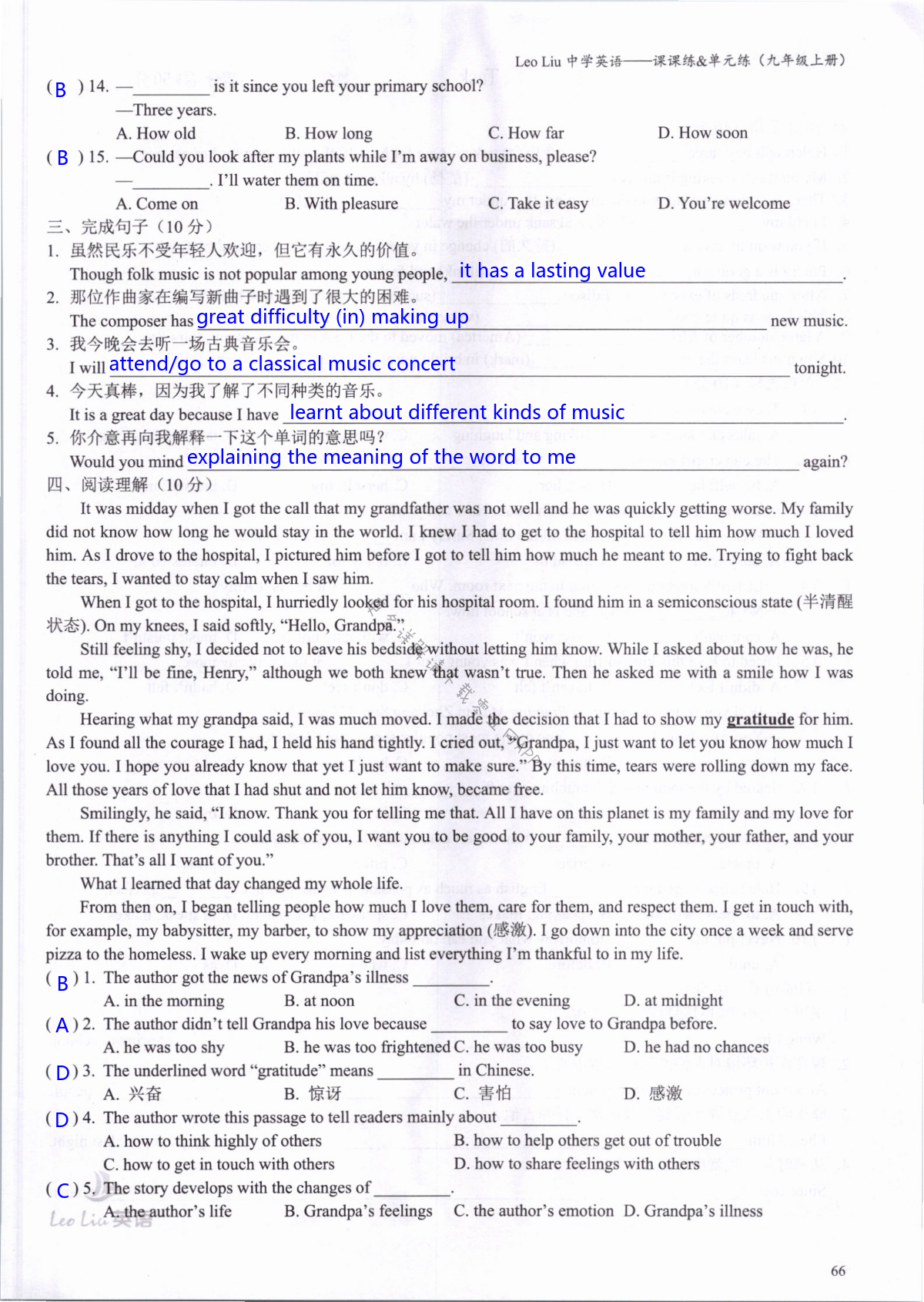 注:目前有些书本章节名称可能整理的还不是很完善,但都是按照顺序排列的,请同学们按照顺序仔细查找。练习册 2021年LeoLiu中学英语九年级上册译林版 答案主要是用来给同学们做完题方便对答案用的,请勿直接抄袭。