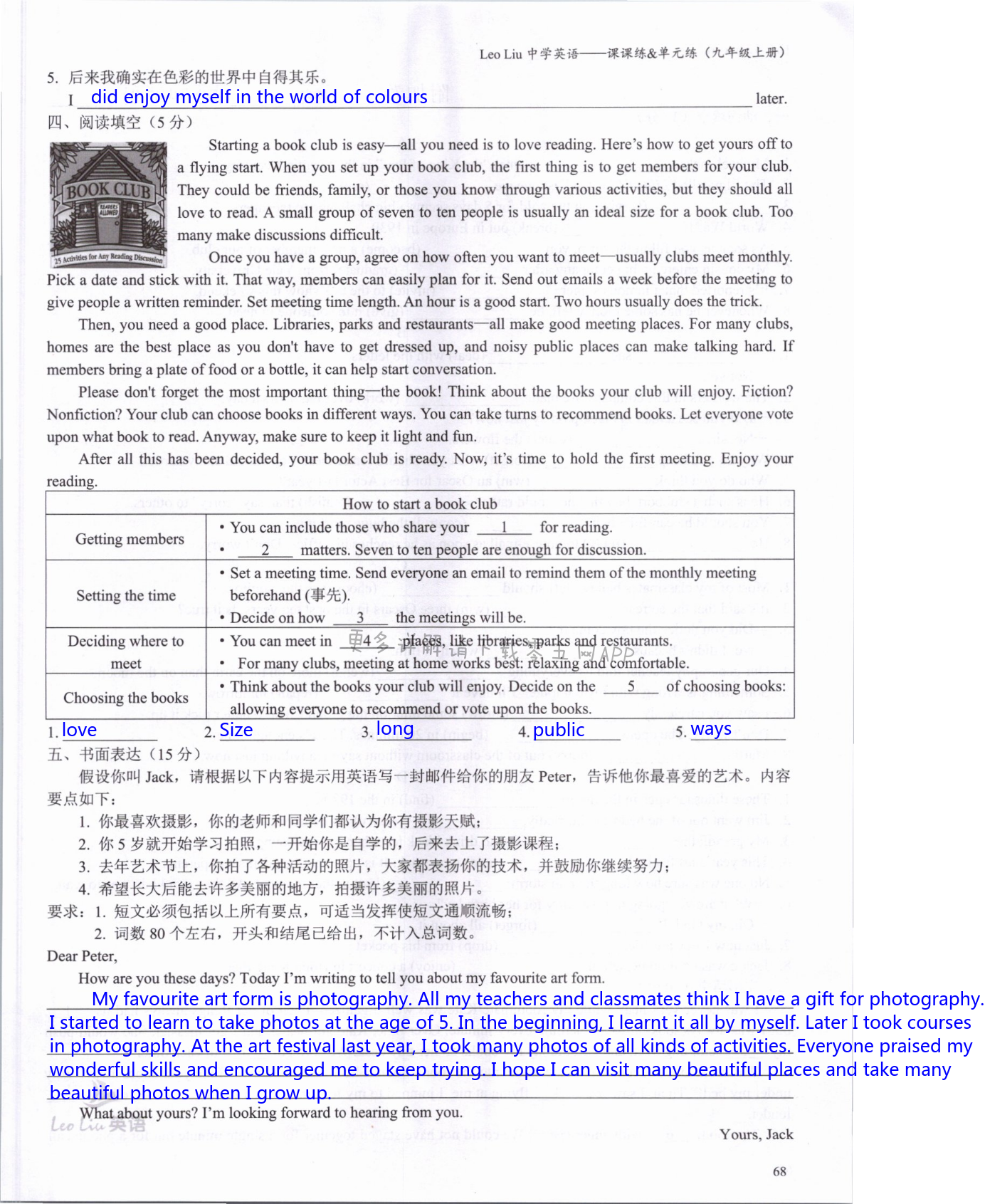 注:目前有些书本章节名称可能整理的还不是很完善,但都是按照顺序排列的,请同学们按照顺序仔细查找。练习册 2021年LeoLiu中学英语九年级上册译林版 答案主要是用来给同学们做完题方便对答案用的,请勿直接抄袭。