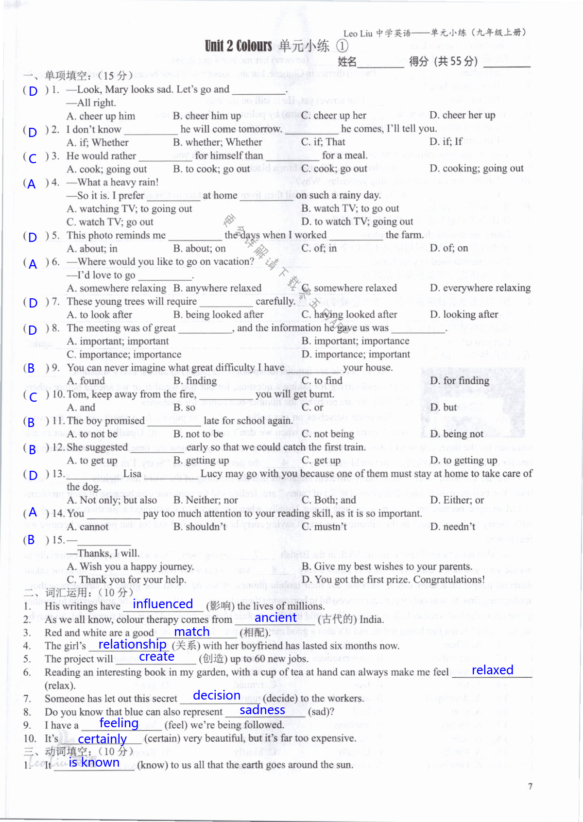 注:目前有些书本章节名称可能整理的还不是很完善,但都是按照顺序排列的,请同学们按照顺序仔细查找。练习册 2021年LeoLiu中学英语九年级上册译林版 答案主要是用来给同学们做完题方便对答案用的,请勿直接抄袭。