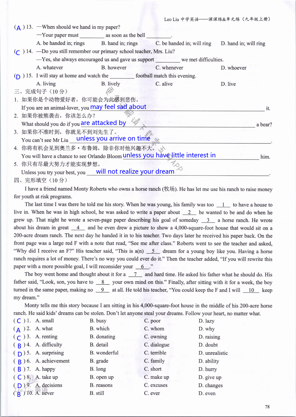 注:目前有些书本章节名称可能整理的还不是很完善,但都是按照顺序排列的,请同学们按照顺序仔细查找。练习册 2021年LeoLiu中学英语九年级上册译林版 答案主要是用来给同学们做完题方便对答案用的,请勿直接抄袭。