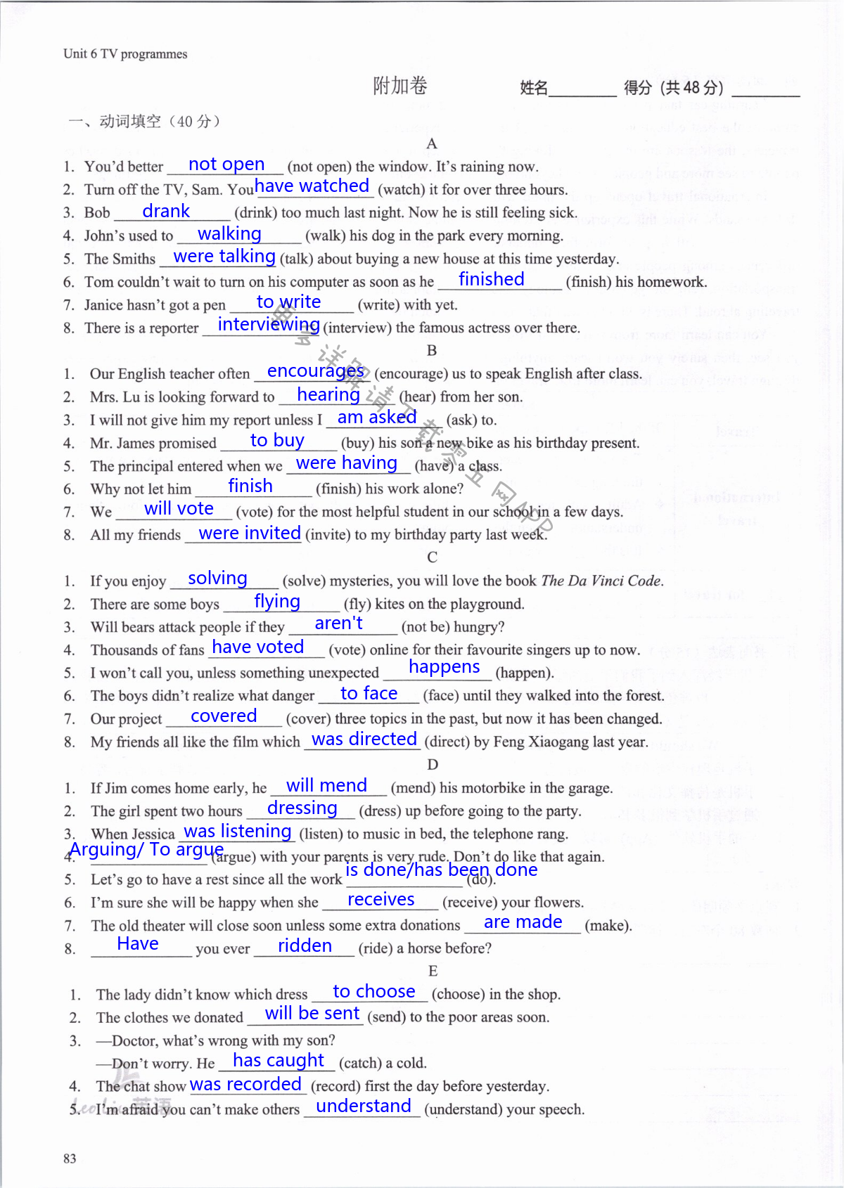 注:目前有些书本章节名称可能整理的还不是很完善,但都是按照顺序排列的,请同学们按照顺序仔细查找。练习册 2021年LeoLiu中学英语九年级上册译林版 答案主要是用来给同学们做完题方便对答案用的,请勿直接抄袭。